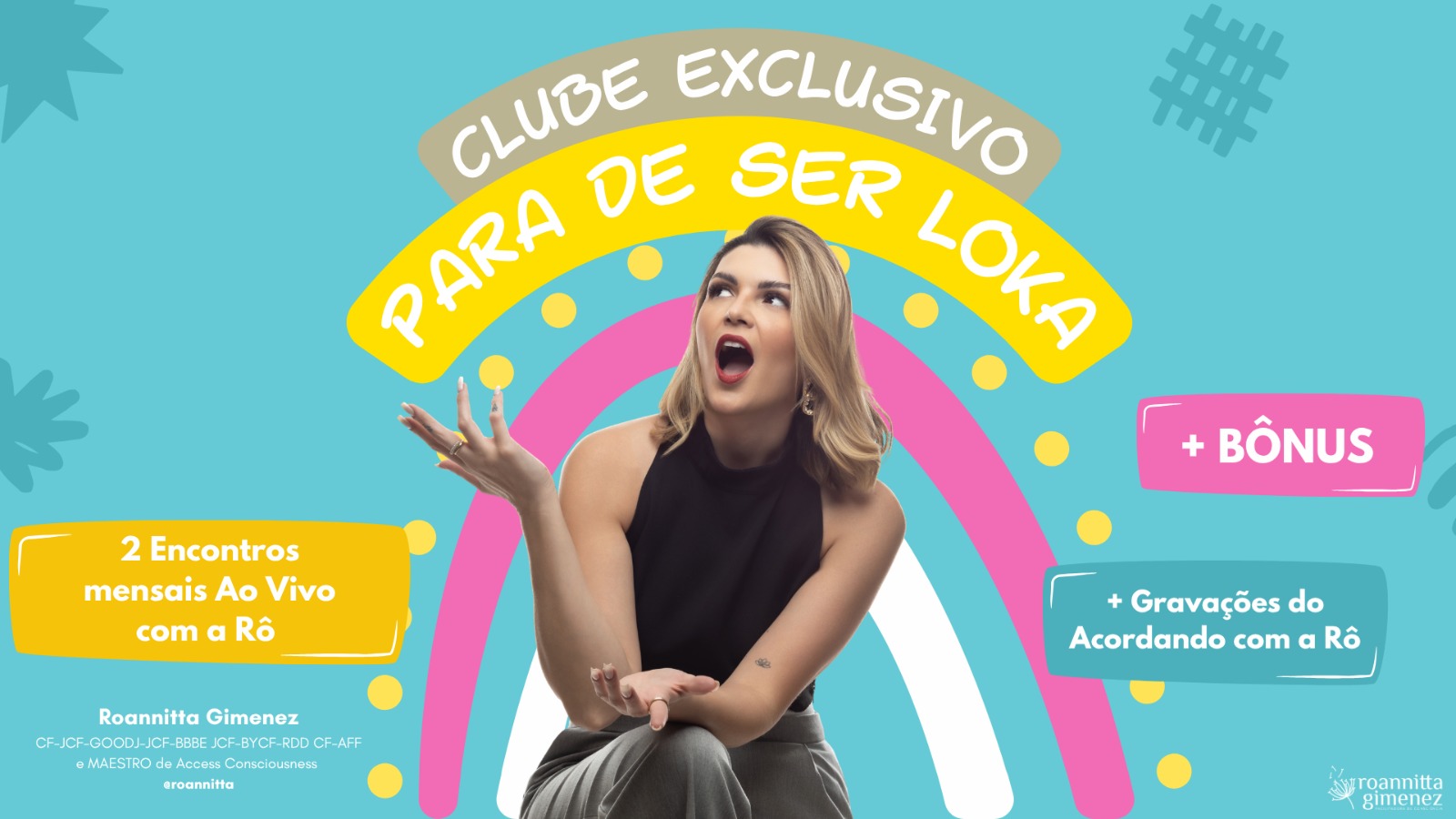 Nesse Clube Exclusivo”, você terá acesso a momentos únicos para expandir sua consciência, aprender ferramentas práticas e descobrir as dicas que a Rô usa diariamente para criar uma vida com mais leveza, diversão, facilidade e propósito!